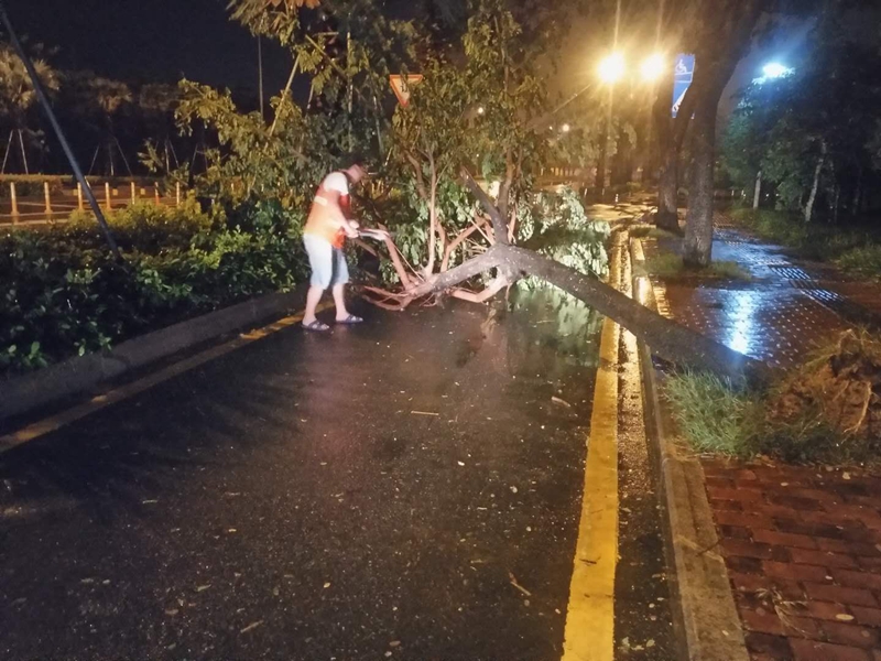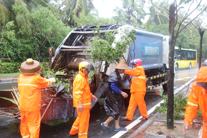 針對臺風(fēng)可能會產(chǎn)生的影響,7月22日晚,生產(chǎn)管理中心啟動了應(yīng)急預(yù)案,迅速成立4支應(yīng)急保障隊伍對臺風(fēng)暴雨期間需要緊急處置的環(huán)境衛(wèi)生問題,在30分鐘內(nèi)到達事發(fā)現(xiàn)場,及時予以處置。安排保潔人員1700人全員上崗, 調(diào)配了140臺大型環(huán)衛(wèi)作業(yè)車輛隨時待命,確保快速恢復(fù)臺風(fēng)過后的三亞、陵水區(qū)域的環(huán)境衛(wèi)生秩序。