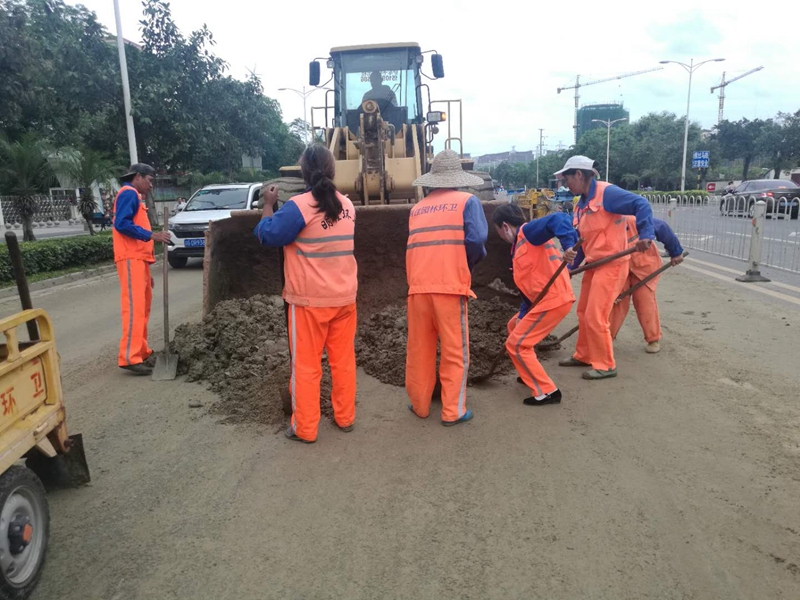 7月23日上午,集團公司組織人員,并派出鏟車、清地車、高壓沖洗車等加強作業(yè),對臺風(fēng)過后的主次干道堆積泥沙進行大沖洗,對散落垃圾、斷裂樹枝樹葉進行全面普掃清運,對倒伏樹木及時扶正,加強垃圾清運,確保道路暢通整潔。截止發(fā)稿,集團公司共出動機械化清掃車輛28車次,各類垃圾壓縮車輛271車次,清運垃圾851噸。