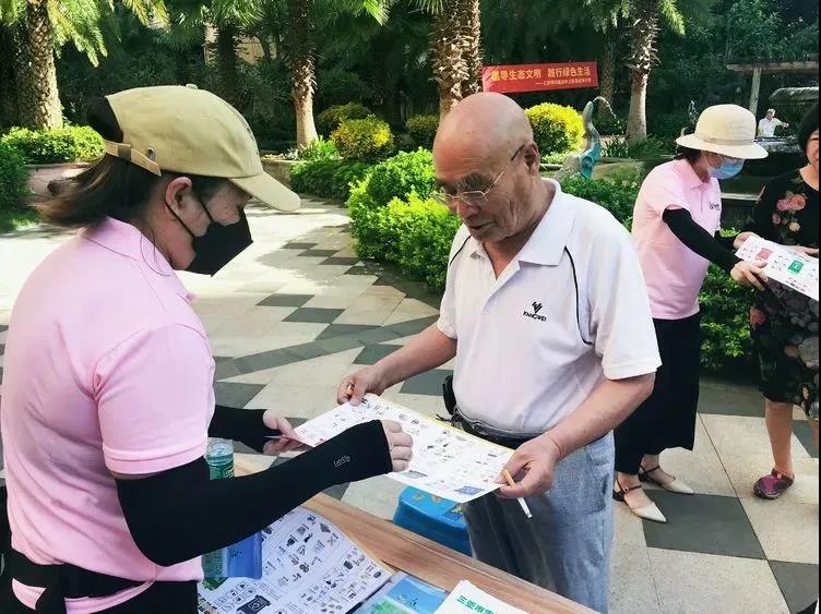 活動伊始,工作人員向小區(qū)居民分發(fā)了垃圾分類宣傳冊,