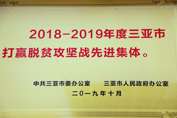 明佳集團(tuán)榮獲2018-2019年度三亞打贏脫貧攻堅先進(jìn)集體”稱號